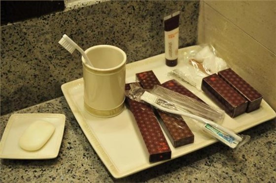 牙膏、牙刷、梳子、香皂、洗发水、沐浴液等用品用过一次就丢弃,不但将造成巨大浪费,同时很多物品还不可降解。随着人们环保意识的日益增强,酒店一次性用品的退出有着必然性。